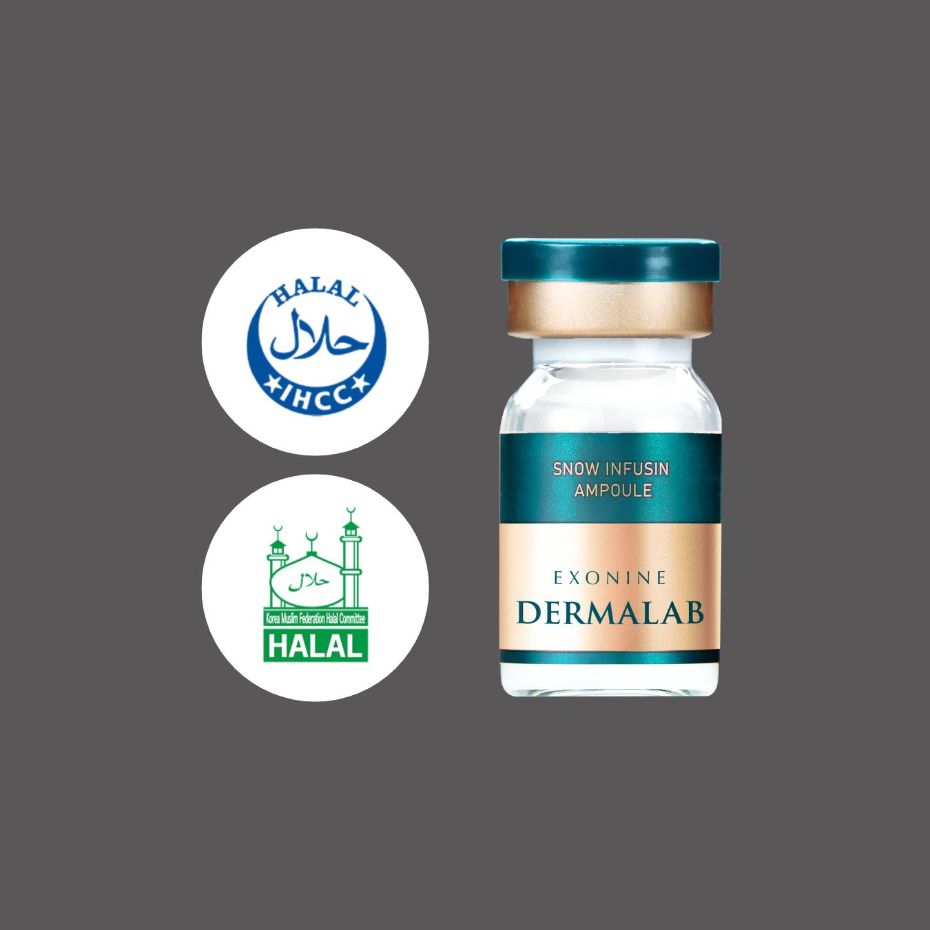 EXONINE DERMALAB Snow Infusin Ampoule is HALAL certified, ensuring that every step of its production adheres to the highest standards of cleanliness, safety and integrity in accordance with Islamic law. Thoughtfully formulated with respect for people, nature and the future, it represents conscious skincare you can trust.