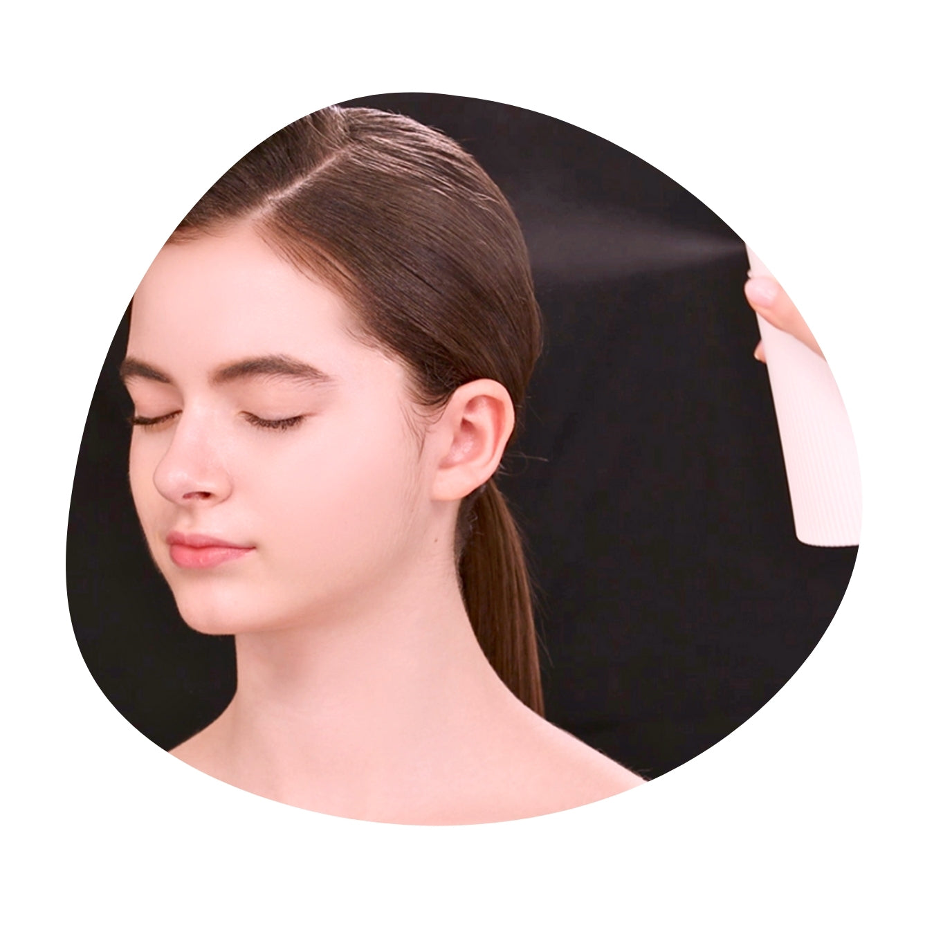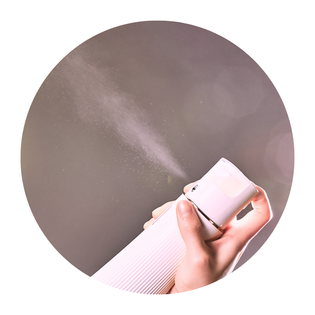 Spray Evenly: Hold at a comfortable distance and apply across face