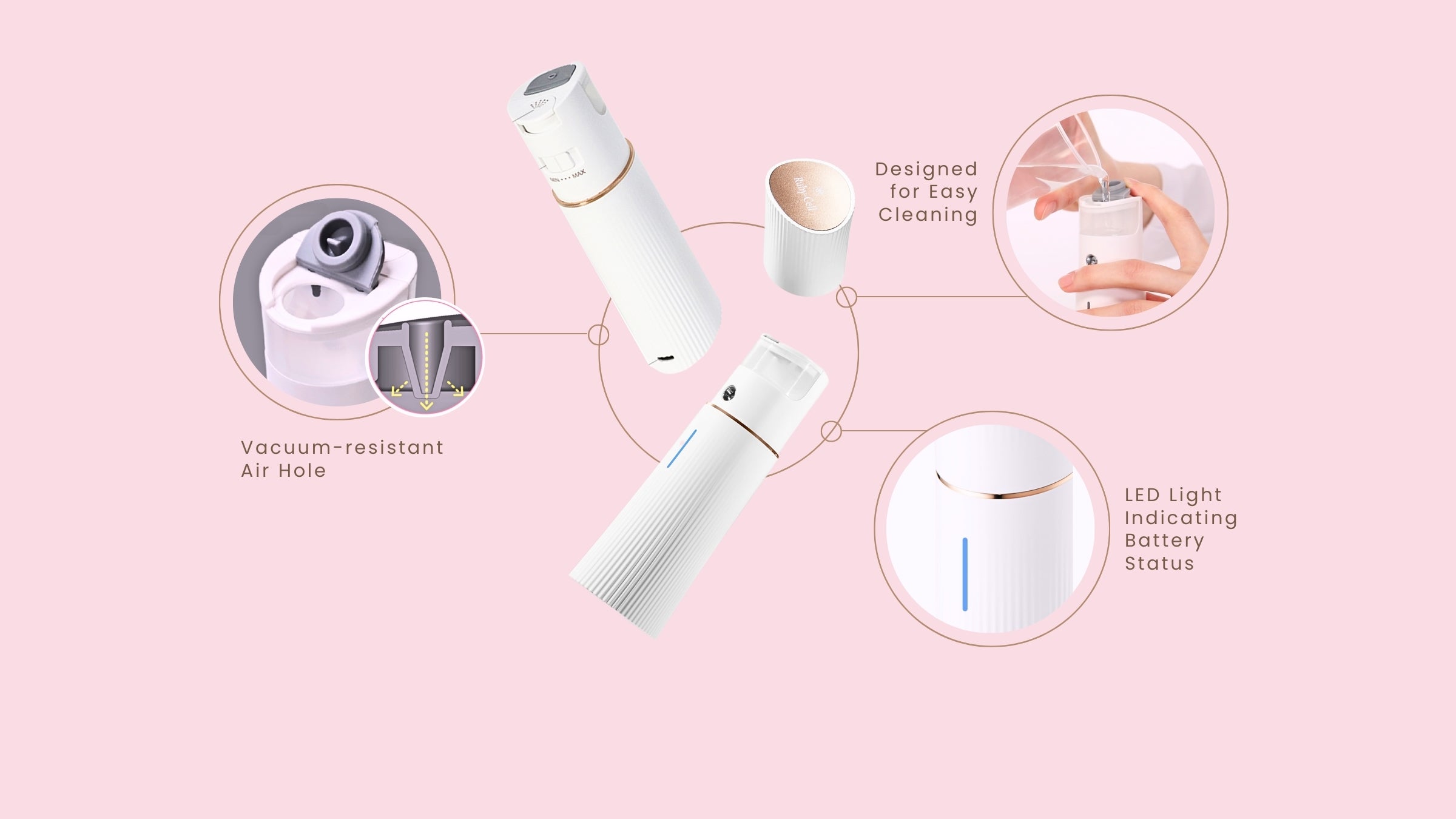 Equipped with a vacuum-resistant air hole, it prevents leaks and maintains consistent mist spray quality. Additionally, the airbrush is designed for easy cleaning, allowing users to maintain hygiene and performance effortlessly.