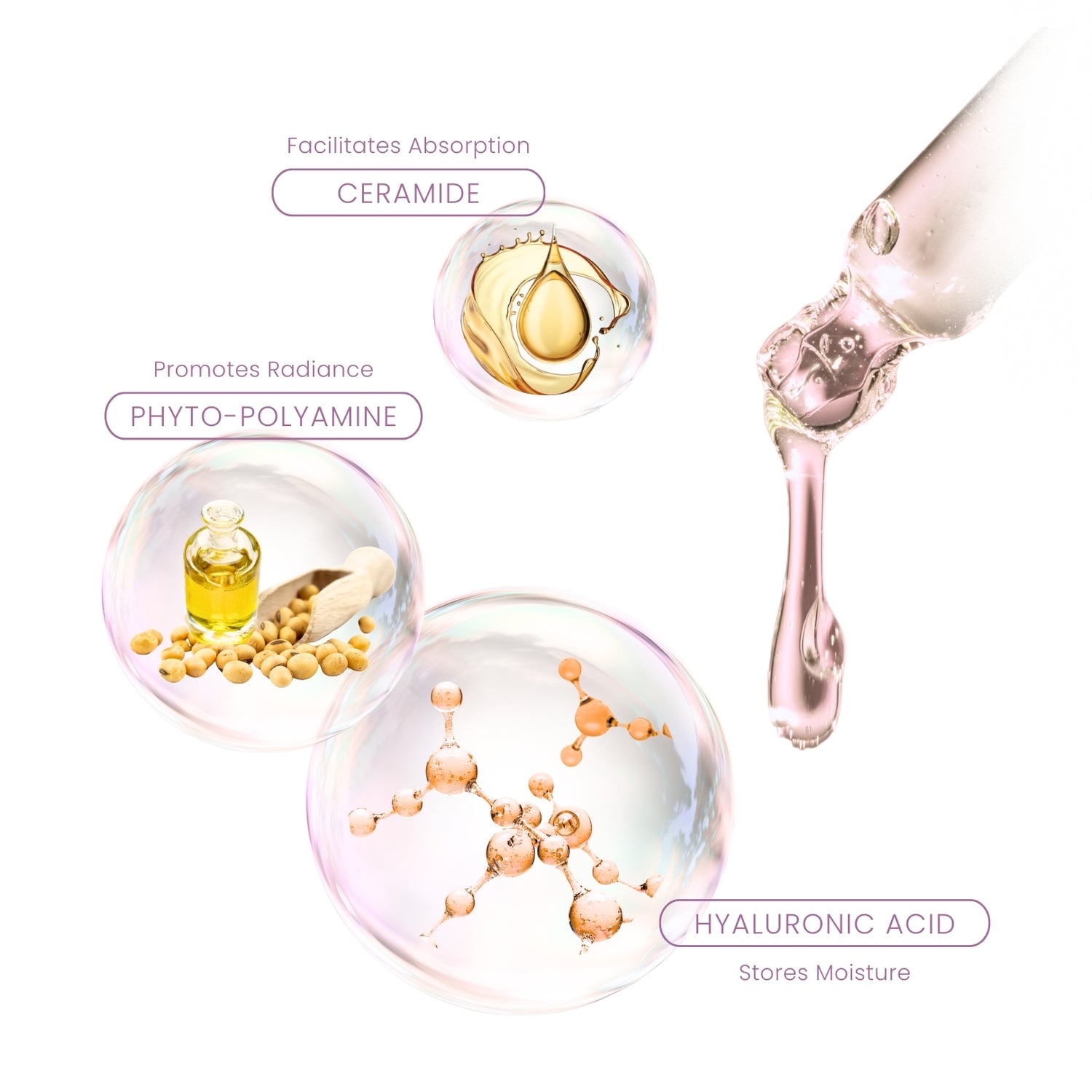 PHYTO-POLYAMINE: 3 types of Phyto-polyamines obtained from soybeans revitalise the skin for a healthy glow
