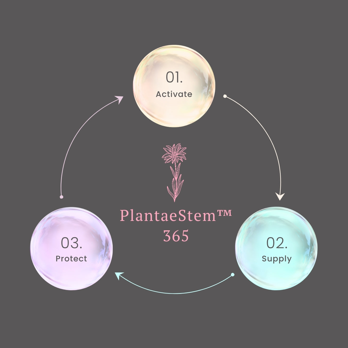 Plantaestem™ 365 is the core technology behind the Ruby-Cell INTENSIVE 4U series that promotes the 3-Step Radiance Cycle for optimum skin vitality and radiance. The name "365" symbolizes the ingredients involved in long-term skin protection and rejuvenation, while addressing signs of aging, dullness, and uneven texture.